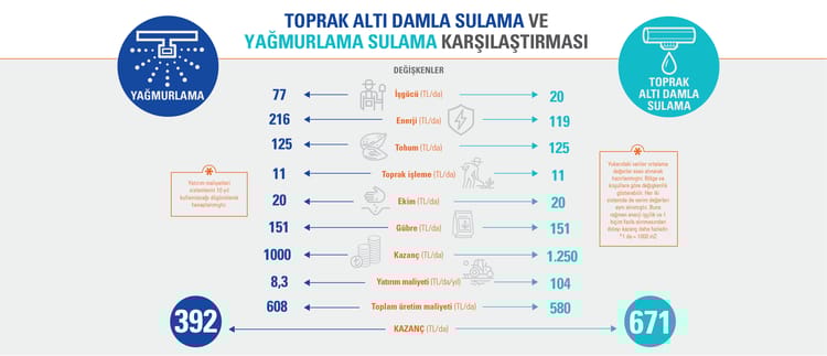 Bu yöntemler arasında ise özellikle toprak altı damla sulama, verimlilik ve kalite konusunda sağladığı avantajlarla ön plana çıkıyor.