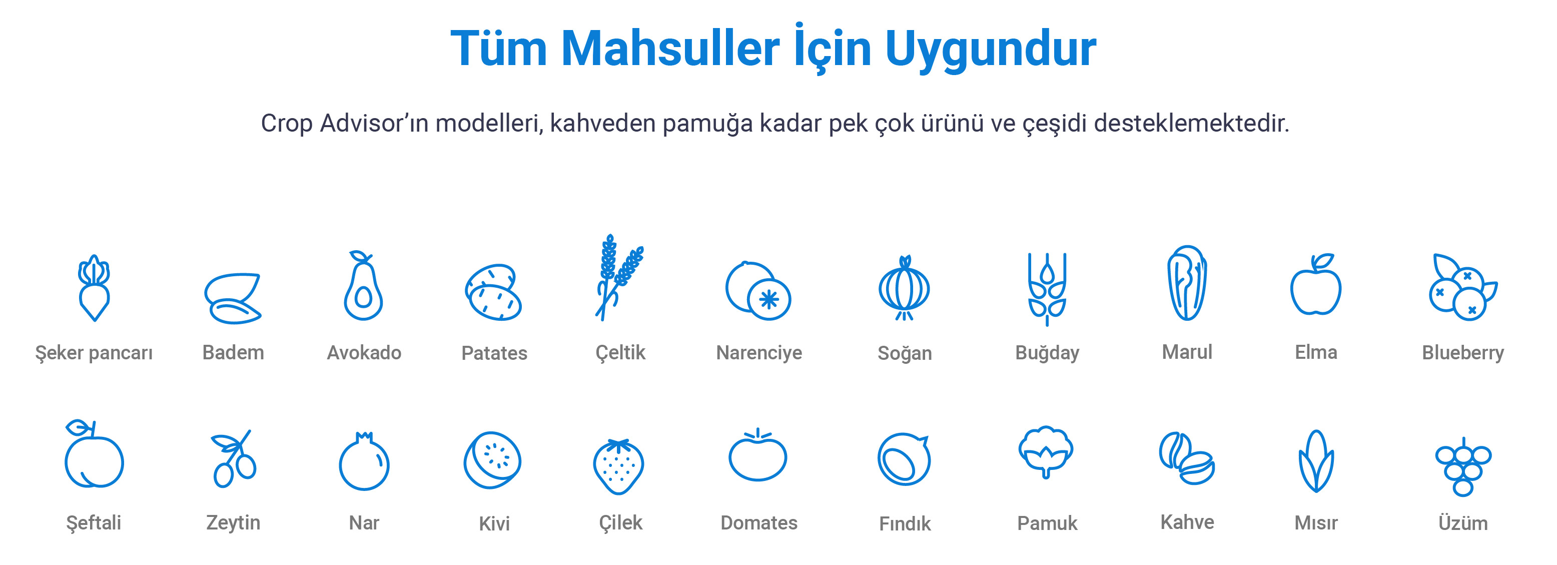 Crop Advisor, yetiştiricilere pratik, veri odaklı destek sunarak sulama planlamasında tesadüflere ve kulaktan dolma bilgilere dayalı çalışmayı ortadan kaldırır. Doğruluğu üç veri kaynağının birleşiminden kaynaklanır: sensör, hidrolik ve mahsul.