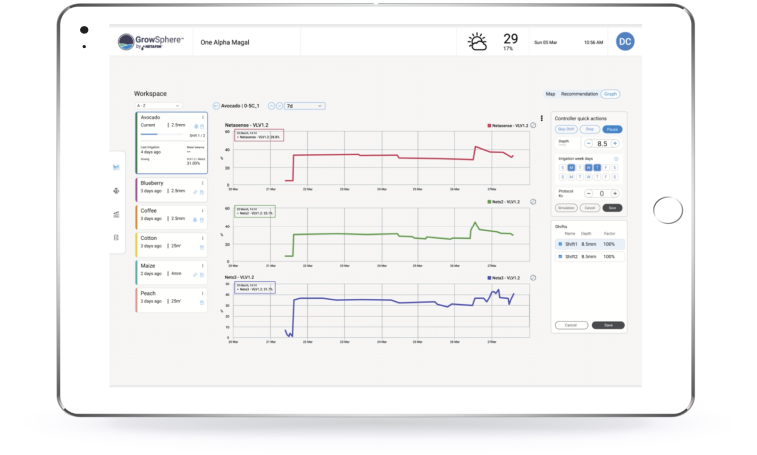 Toprakta, hava koşullarında, bitkilerde ve hidrolik sistemlerinin durumunda neler olup bittiğinin nabzını tutmak kritik öneme sahiptir. GrowSphere™, hassas sulamayı gerçeğe dönüştürerek izleme ve değerlendirme süreçlerini yeni bir seviyeye taşıyor.